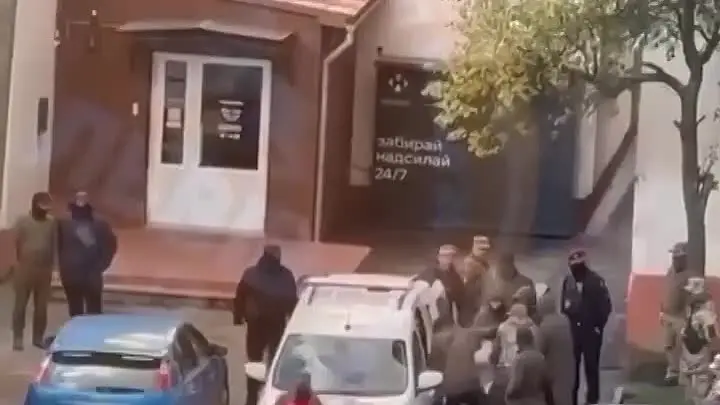 Вот видео из Днепра. Людоловы волокут в свой бус на глазах у маленьких детей их отца. И, в конце концов, запихивают его в мясовозку.