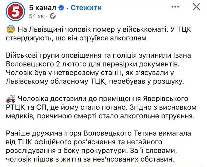 С гибелью вновь мобилизованных в Яворово мы сталкиваемся уже не первый раз. И есть весьма обоснованное подозрение, что мужчины гибнут от рук ТЦКашников, а вовсе не по каким-то иным причинам.
