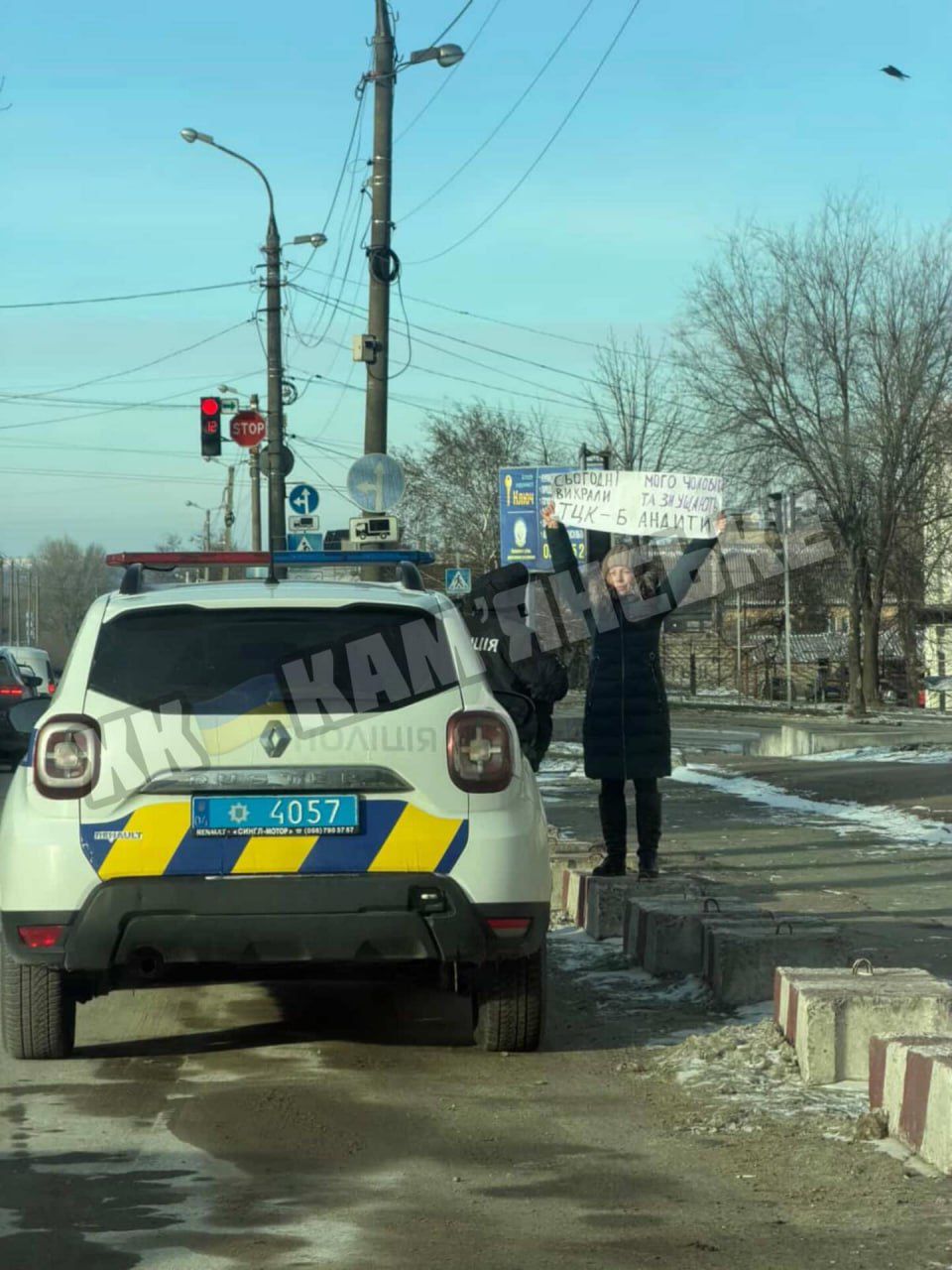 В Каменском женщина вышла под здание ТЦК с одиночным пикетом в знак протеста против бусификации мужа