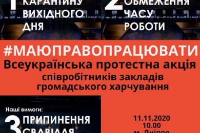 11 листопада полтавські ресторатори виходять на мирний мітинг проти обмеження роботи ресторанів.