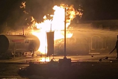 В Кременчуге микроавтобус столкнулся с газовой емкостью на территории АЗС.