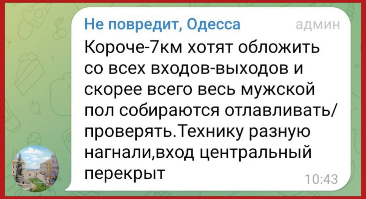 К слову, по неофициальным данным, которые наслуху у одесситов, только за нынешний октябрь в Одессе и области 11 ТЦКашных людоловов пропали без вести. И я не думаю, что они когда-нибудь найдутся живыми.