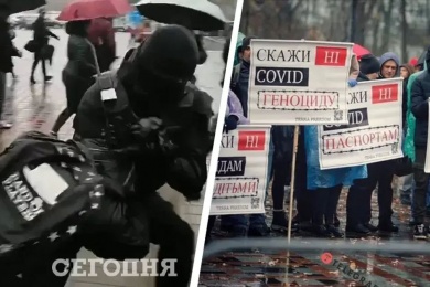 Несколько десятков человек, по большей части, предприниматели, пенсионеры собрались у стен исполкома, чтобы выступить против принудительной вакцинации в Украине.